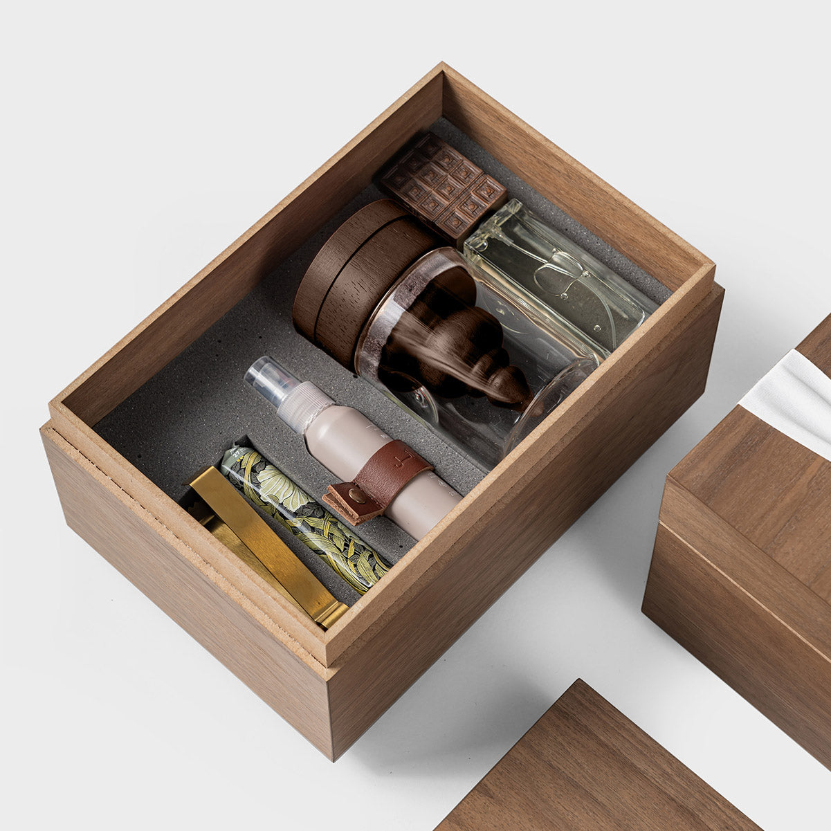 ارتقِ بتجربة الإهداء مع هذه العلبة الخشبية الفاخرة، مزيج متوازن يجمع بين الأصالة والفخامة العصرية. صُمّمت بعناية فائقة لتمنحك كل ما تحتاجه لخلق أجواء دافئة وراقية ومفعمة بالعبق سواء في المنزل أو المكتب.
