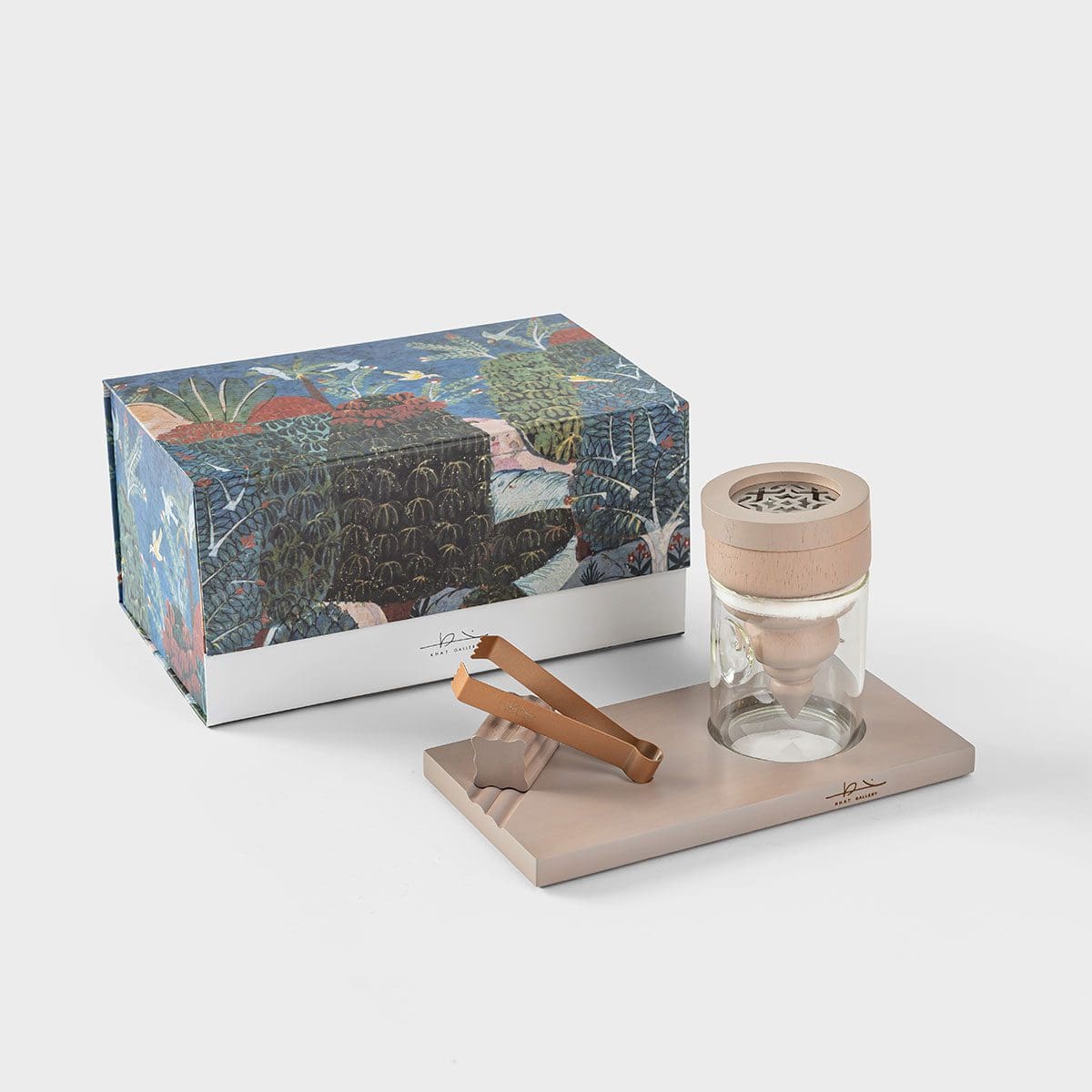 Enhance your aromatic experience with this elegant wooden tray, featuring a beautifully designed Aknaf incense burner in new vibrant colors. Complete with tongs and 10 pieces of charcoal, this set is perfect for creating a soothing and fragrant atmosphere in any space.It’s ideal for Ramadan, gifting, or adding a touch of serenity to your room or office.
