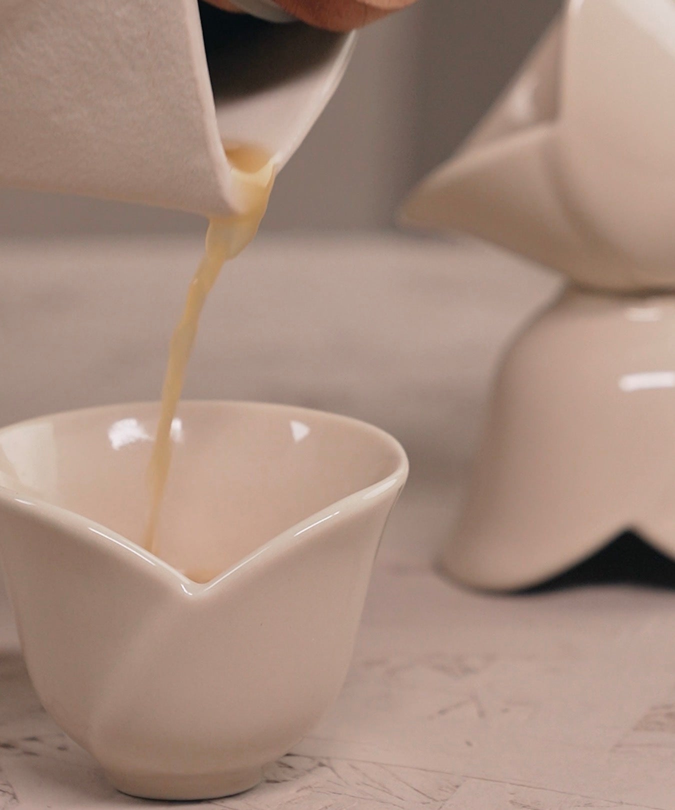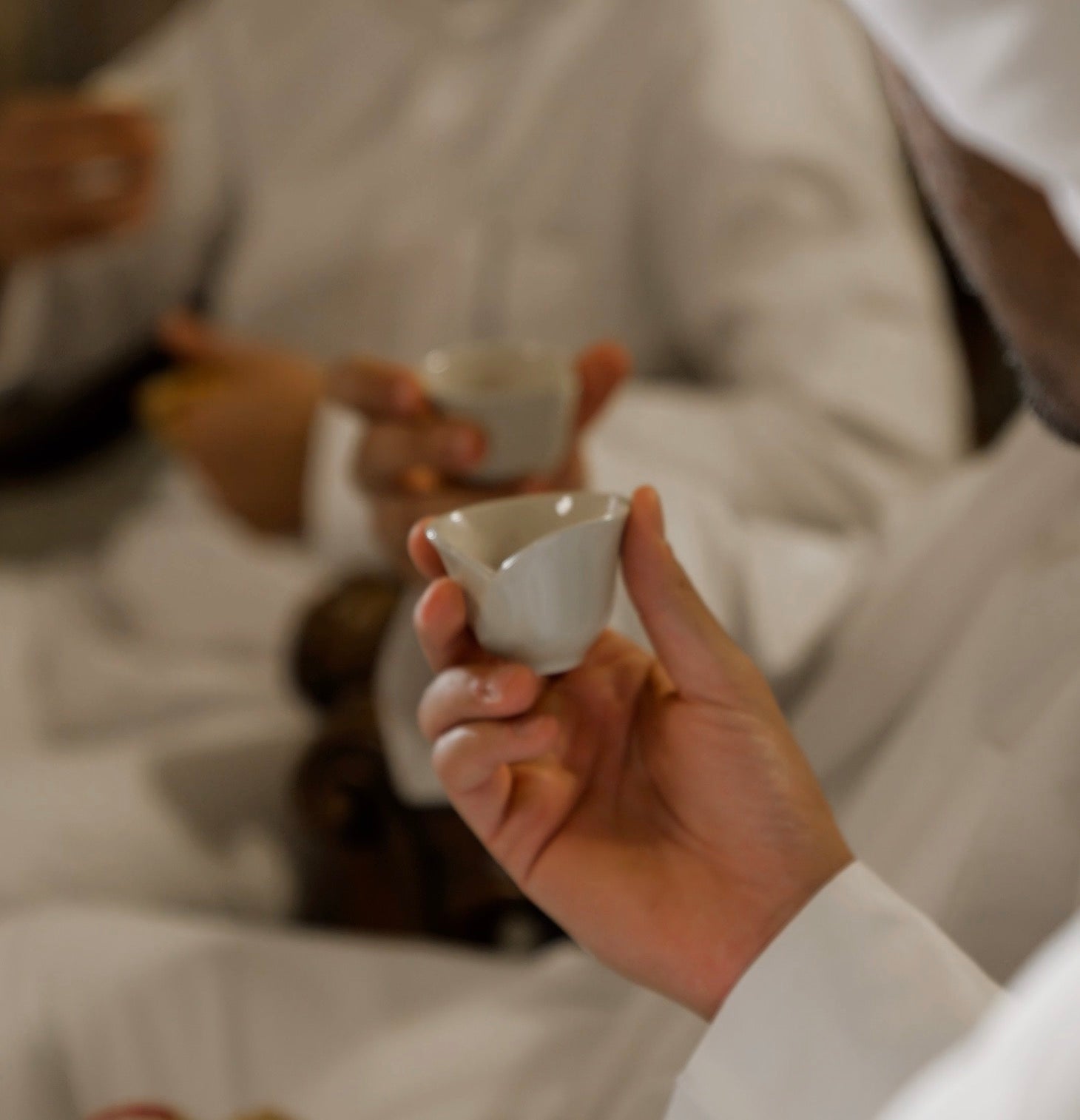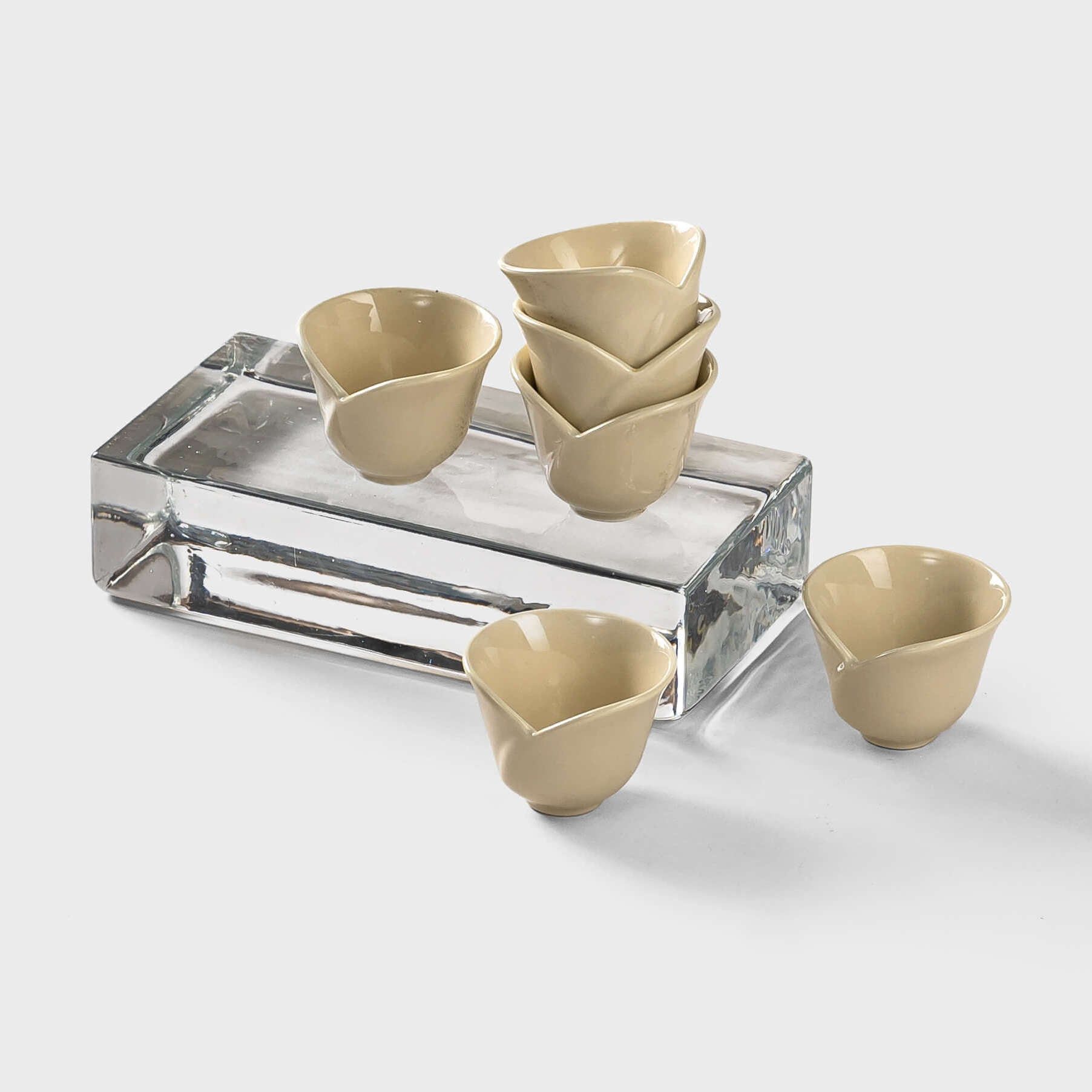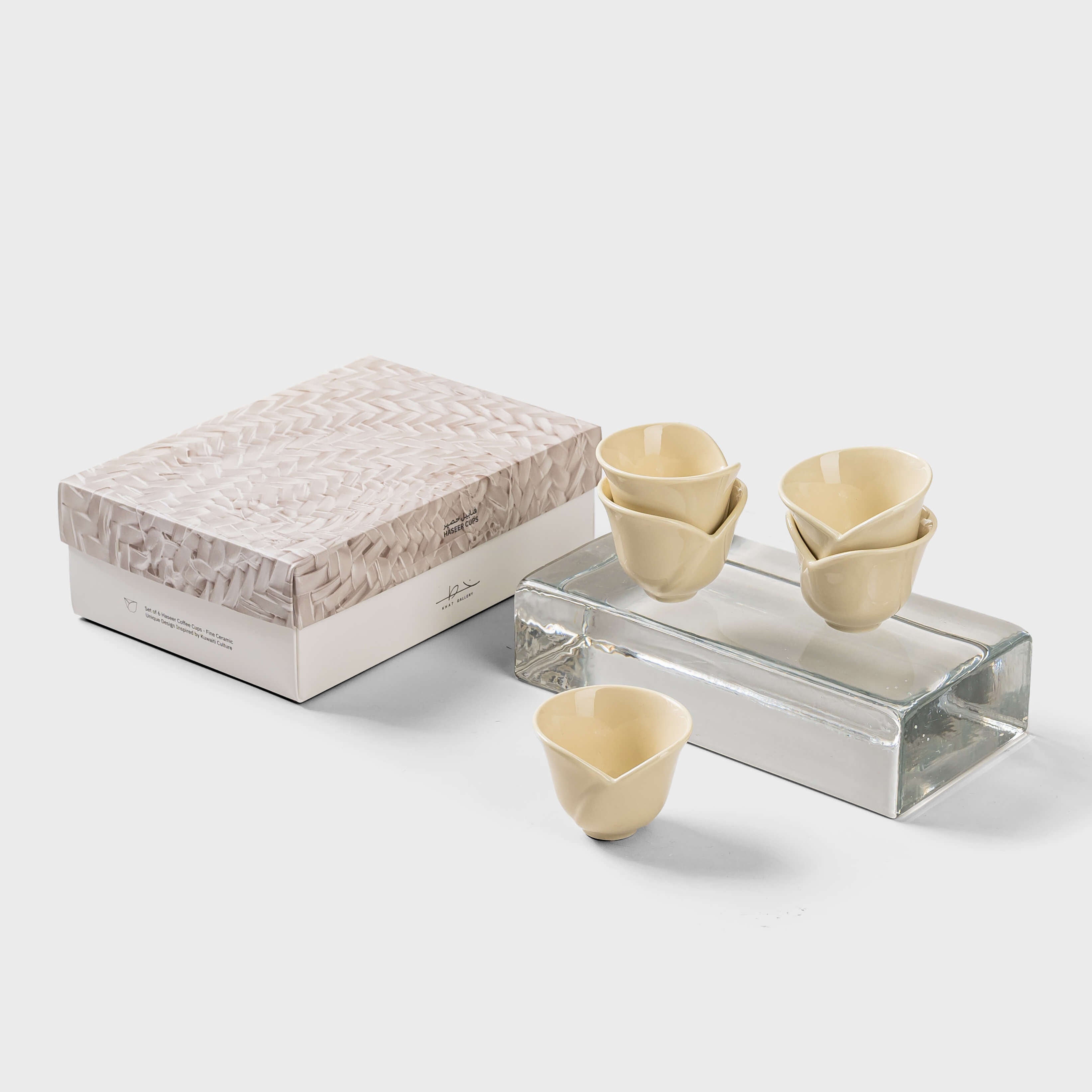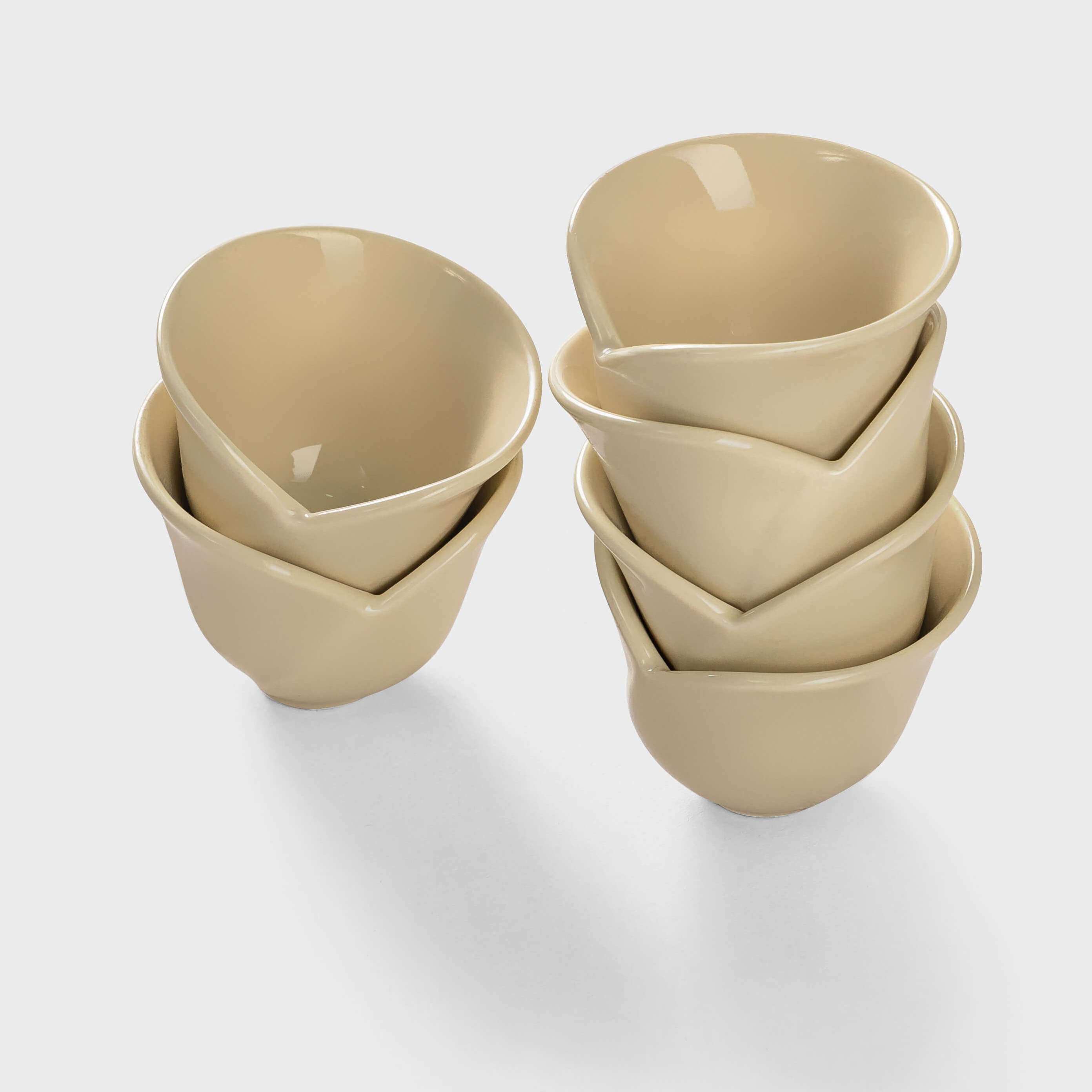An artistic set of six Arabic coffee cups (finjans).