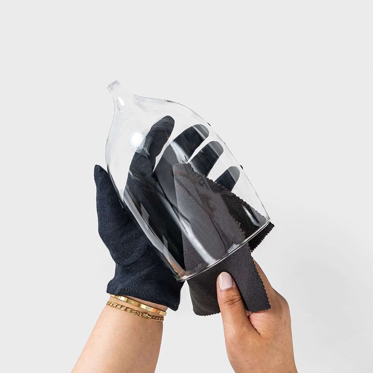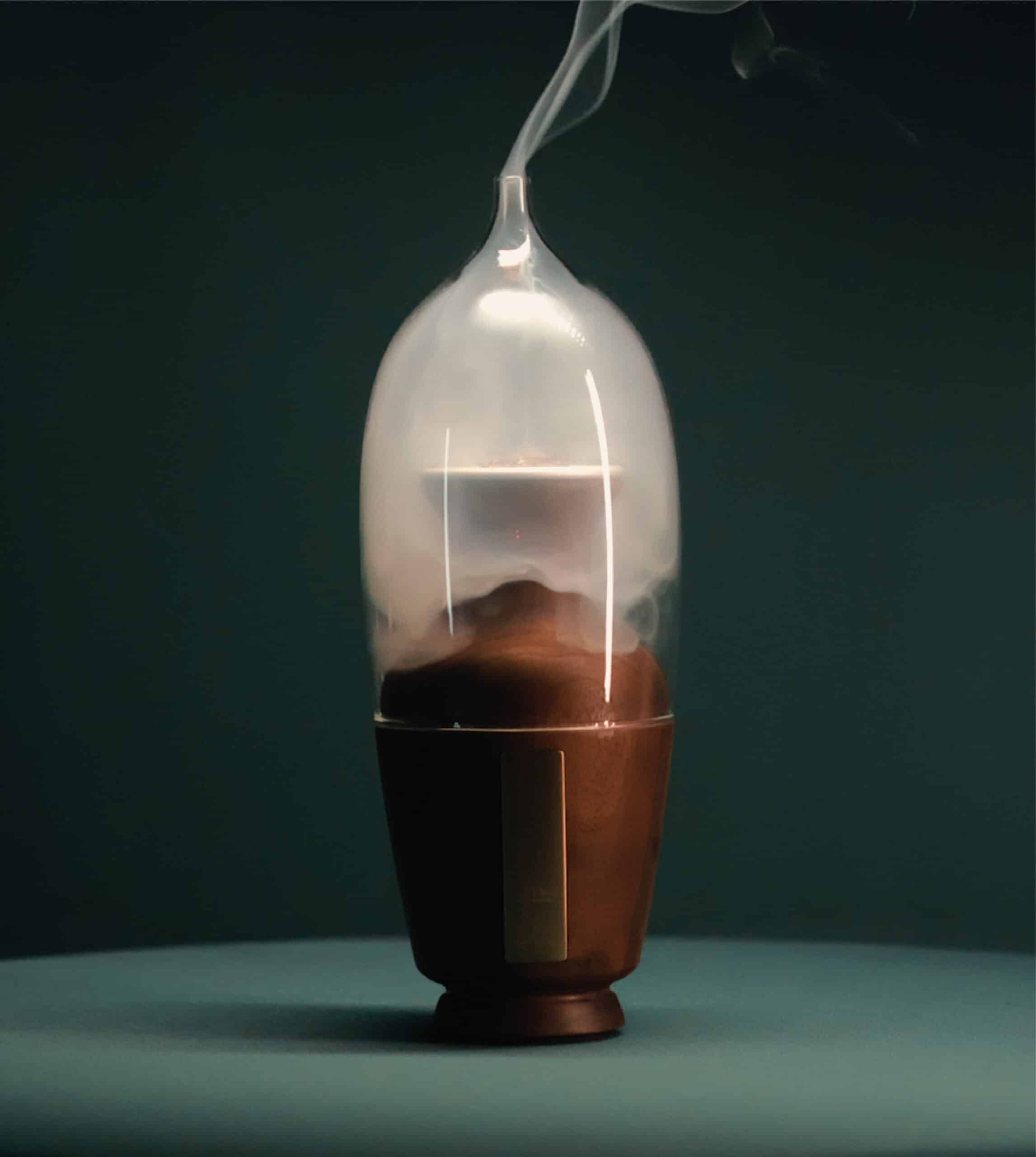 Madar was designed in a collaboration with local artist Zainab Al Baghli. The design consists of a walnut wooden base, and a glass dome.The Mubkhar comes with a cloth used for cleaning the glass dome, and gloves to hold the fragile glass without leaving fingerprints.