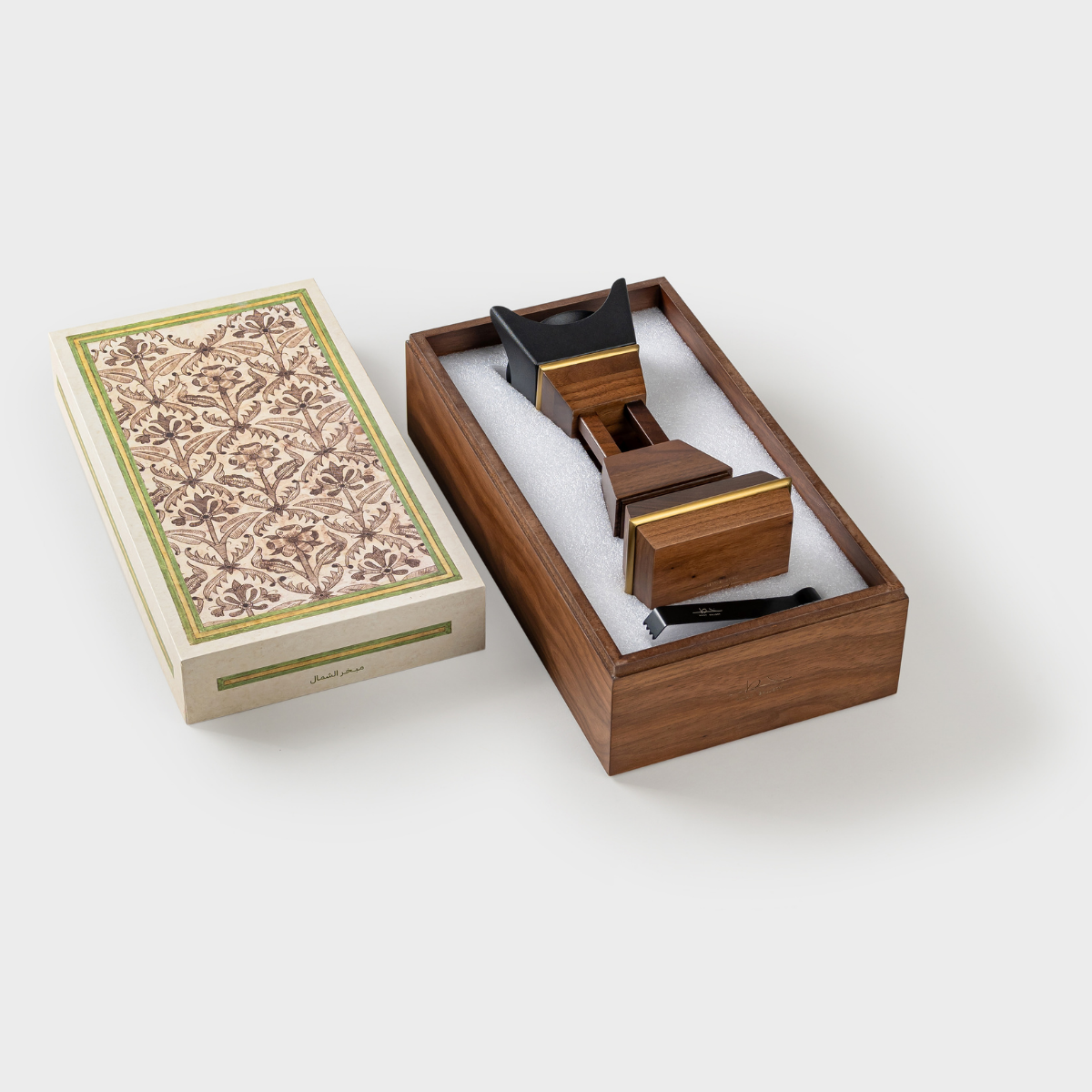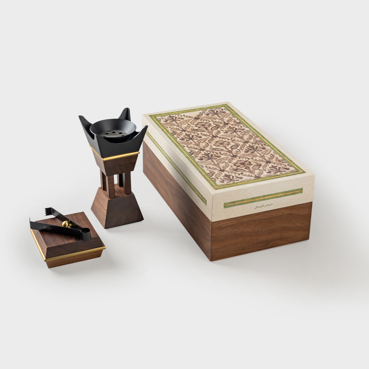 Mubkhar Al-Shamal is a refined incense burner that reimagines the traditional Gulf mabkhar with a contemporary touch. Inspired by regions known for their historic incense craftsmanship, it combines natural wood with clean modern lines to create a warm, luxurious presence.