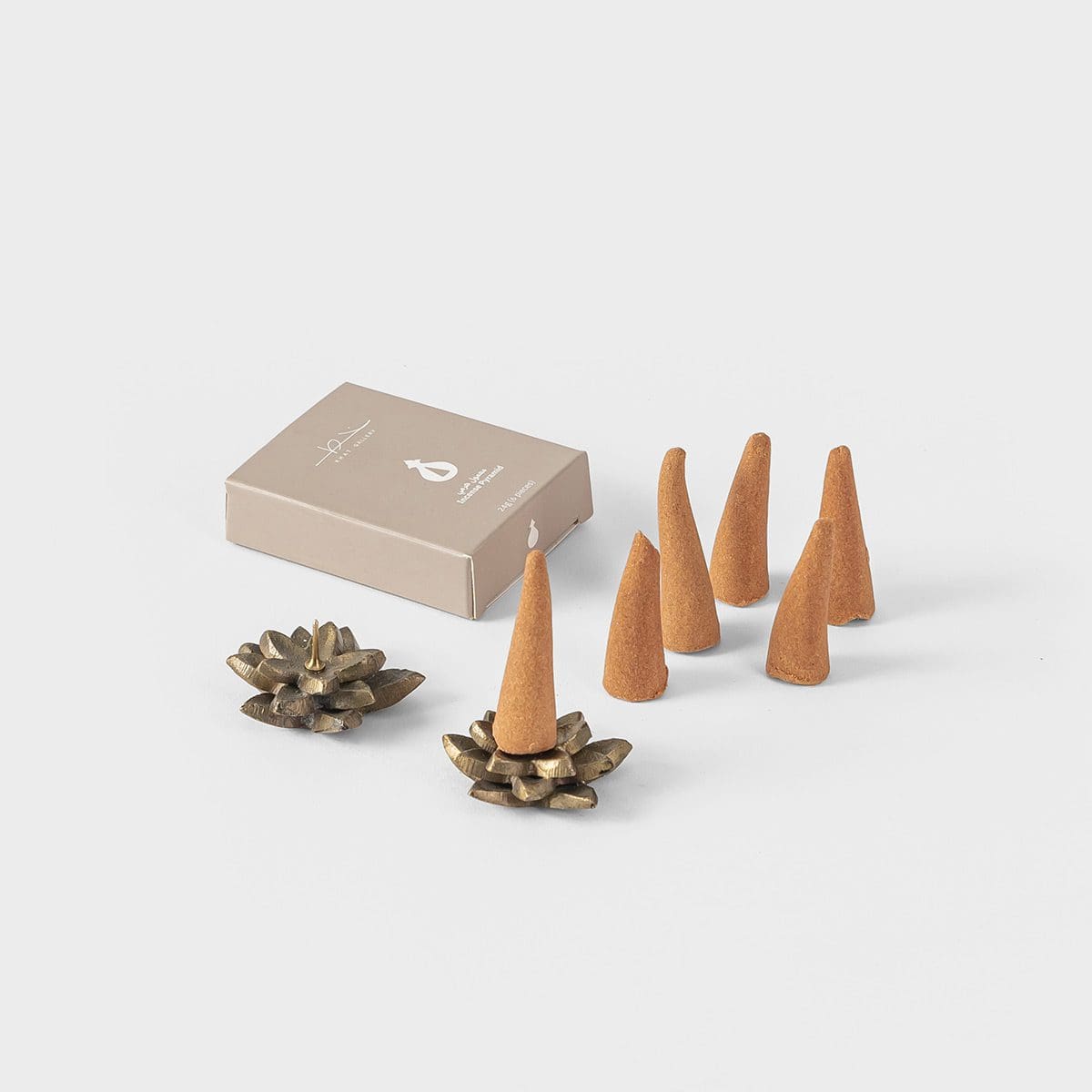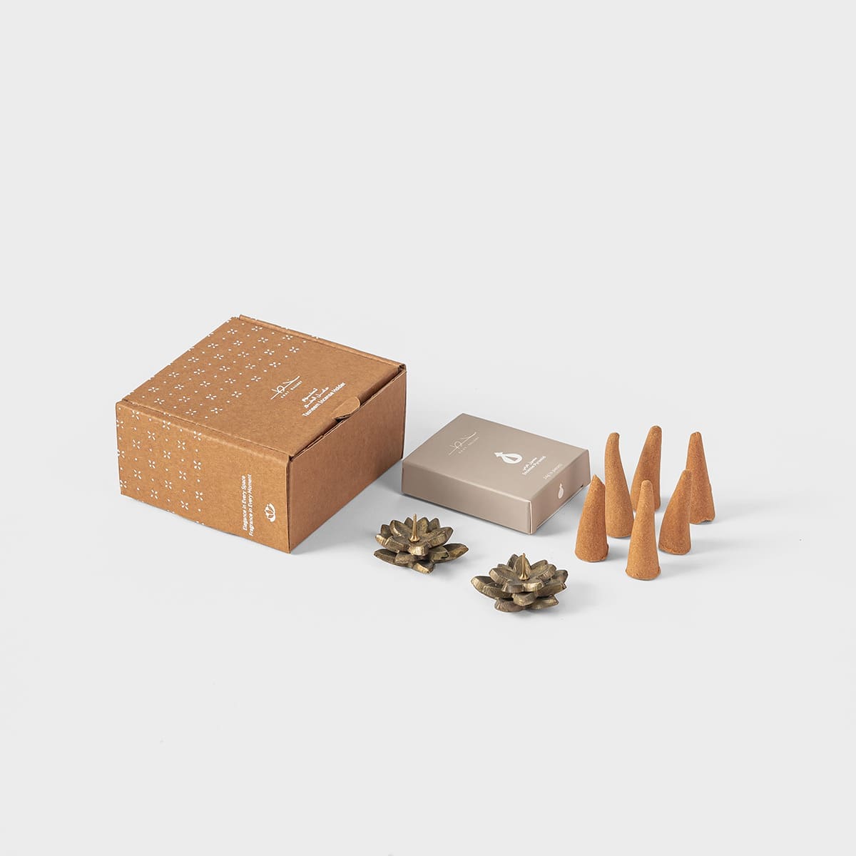 A metal base shaped like a rose with 6 pieces of cone incense to fill the space with a delightful fragrance.
